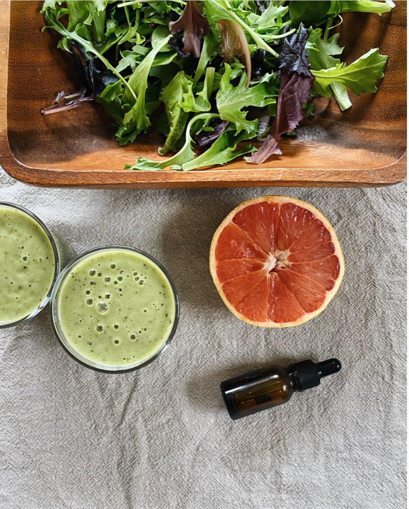 - 2-3 drops of essential oils – Citrus fresh, lemon, grapefruit, lime, and orange are nice additions to a smoothie for a flavor burst, and immunity boost (grapefruit is helpful in liver detox, and any of the citrus oils are great in water for boosting immunity and overall wellness). We love Young Living and have been using it for 7 years to promote a strong immune system, and much more.
